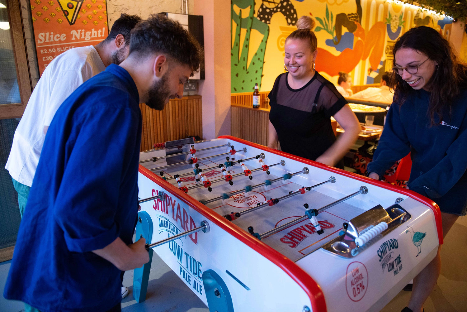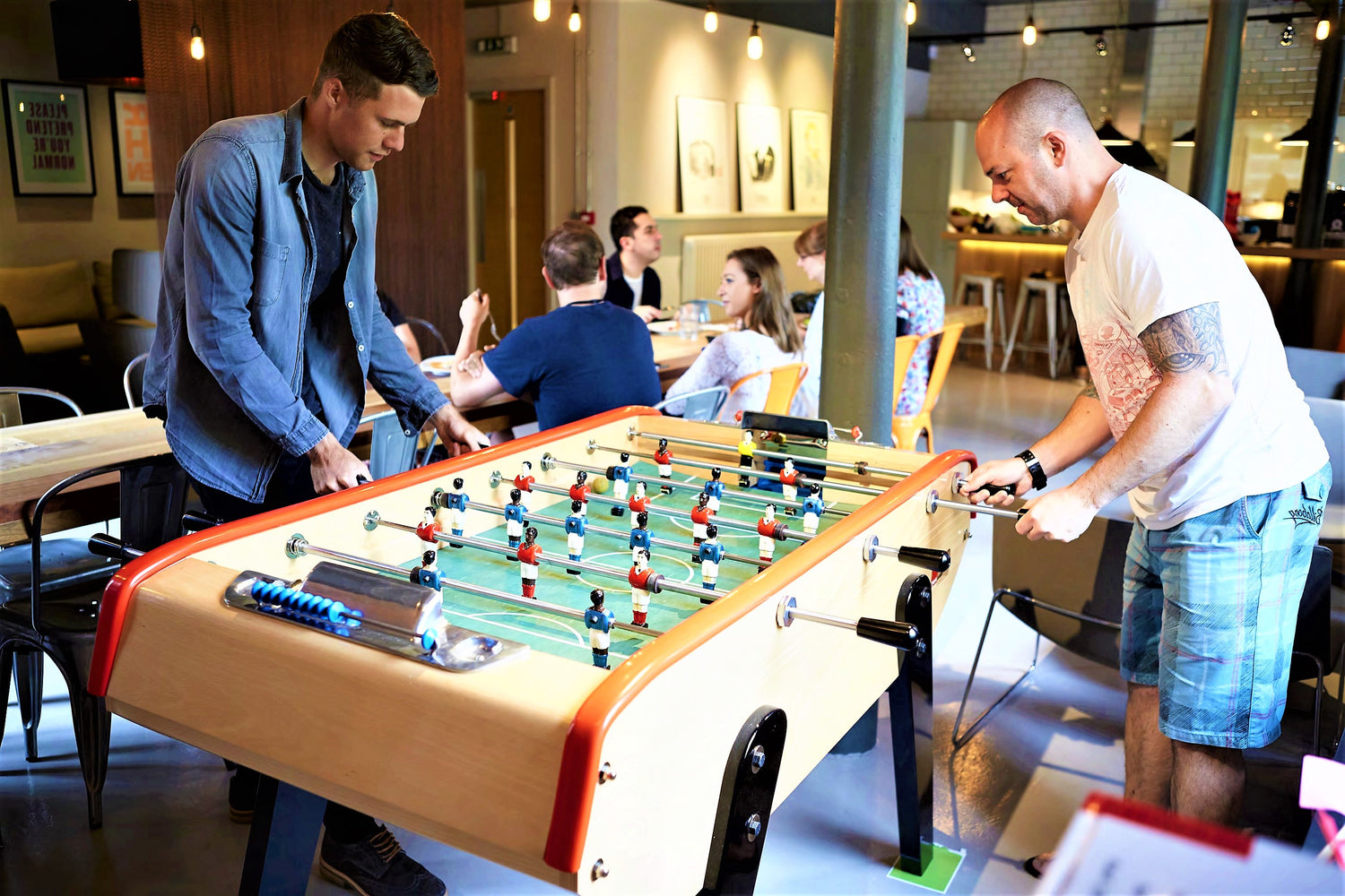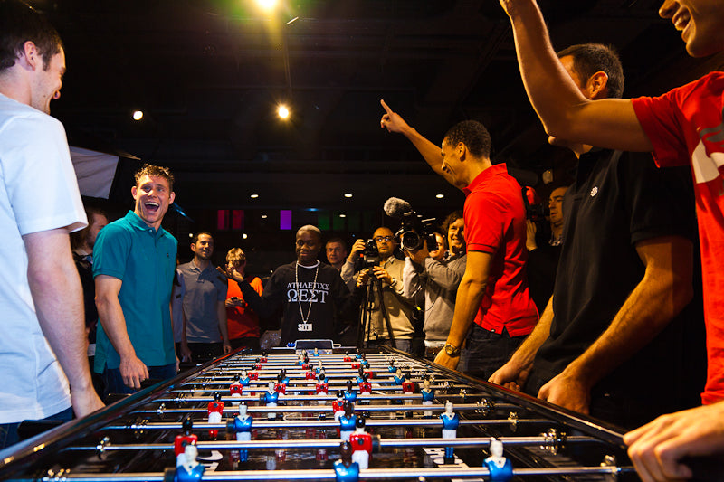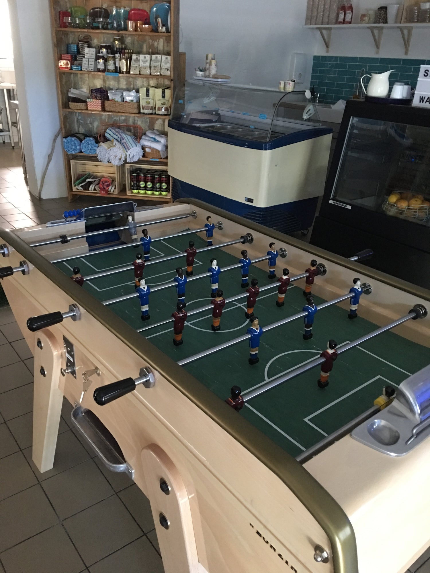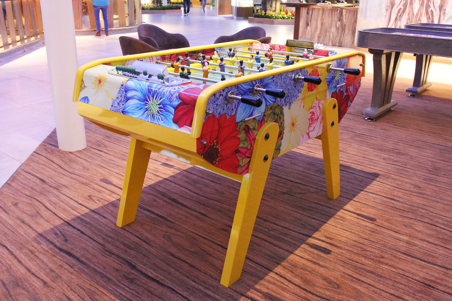 Yes you can. Simple options include custom teams, colour changes for the score markers and hand rails – even painted or stained finishes for the cabinets. There are also a number of upgrades to the table itself available.