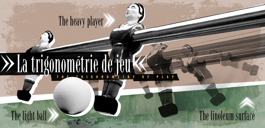 It’s the ‘Trigonometry of Play’ that gives all Babyfoot the unique playing quality revered the world over. It’s the three way combination of a heavy, cast player, the light ball and the grippy surface of the linoleum pitch that enables players to pass, trap control and deliver accurate balls every time. These skills take practice, but the rewards are worth it. High speed, beautifully paced, fluid gameplay that rewards finesse and flair. Ask any French man. He wouldn’t play on anything less!